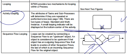 Na tym diagramie pokazałem także “procedurę” (pętla), stąd ta “strzałka wstecz”. Troszkę “na skróty” (skrót myślowy ;)) umieściłem na diagramie “jawnie” tę pętlę. W BPMN można to (konstrukcja pętli “do siebie”) zastąpić dedykowanym symbolem (aktywność oznaczona pętelką u dołu, element Loop w BPMN).