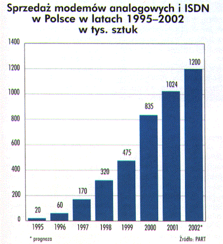 Sprzedaż tego typu modemów utrzymuje się na stałym poziomie co świadczy tylko o tym, że zainteresowanie nimi nie maleje i systematycznie rośnie liczba ich użytkowników. Modemy mają obecnie zastosowanie głównie do pracy z Internetem. Co ciekawe rośnie zainteresowanie systemem dostępu dial-up.