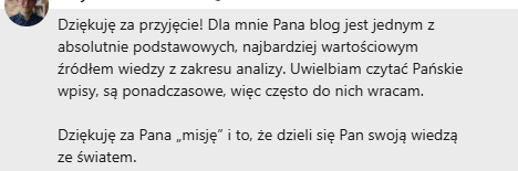 Piszę do Ciebie żeby Ci podziękować za przekazaną wiedzę i doświadczenie oraz z kronikarskiego obowiązku bo wiem że starasz się śledzić jak inni pracują 😉